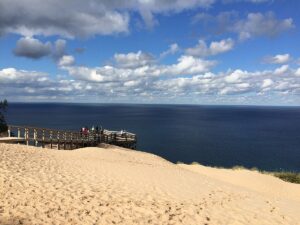 ![]() Lake Michigan, Sleeping Bear Dunes National Lakeshore, September 2015. Credit: NOAA Today you have the option to pedal the Sleeping Bear Heritage Trail, winding through forests, dunes, and lakeshore vistas. Extend your ride around Glen Lake or stop at the village of Empire for breathtaking dune overlooks. Return to Glen Arbor for free time to explore local shops or relax at the resort. We end the day with another group dinner. |